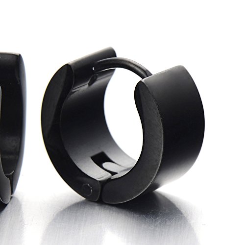 2 Orecchini a Cerchio, Orecchini da Uomo Donna, Acciaio Inossidabile, Nero