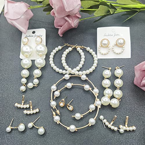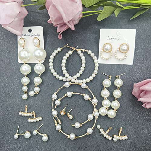 9Paia Perle Orecchini Donna Orecchino con Perla Orecchino Perla Pendente Anallergico Orecchini Perle Pendenti Argento Orecchini a Cerchio Perle Pendenti Orecchini per Donna