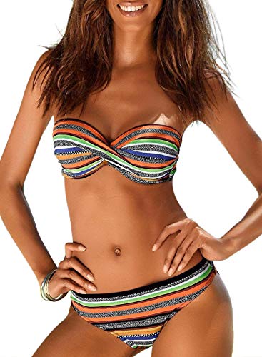 Aleumdr Sexy Costume da Bagno Donna Tie Dye Costume Donna Due Pezzi Bandeau Set Bikini Donna Push-Up