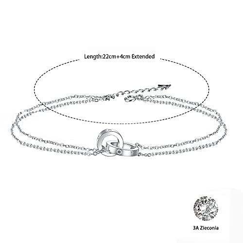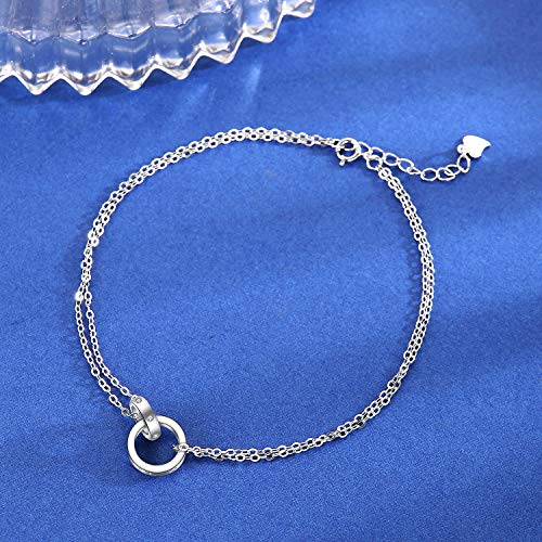 Arrebol Cavigliera Donna Argento 925 Doppio Cerchi Regalo Dolce Estivo Doppie Catene Regolabile 26cm
