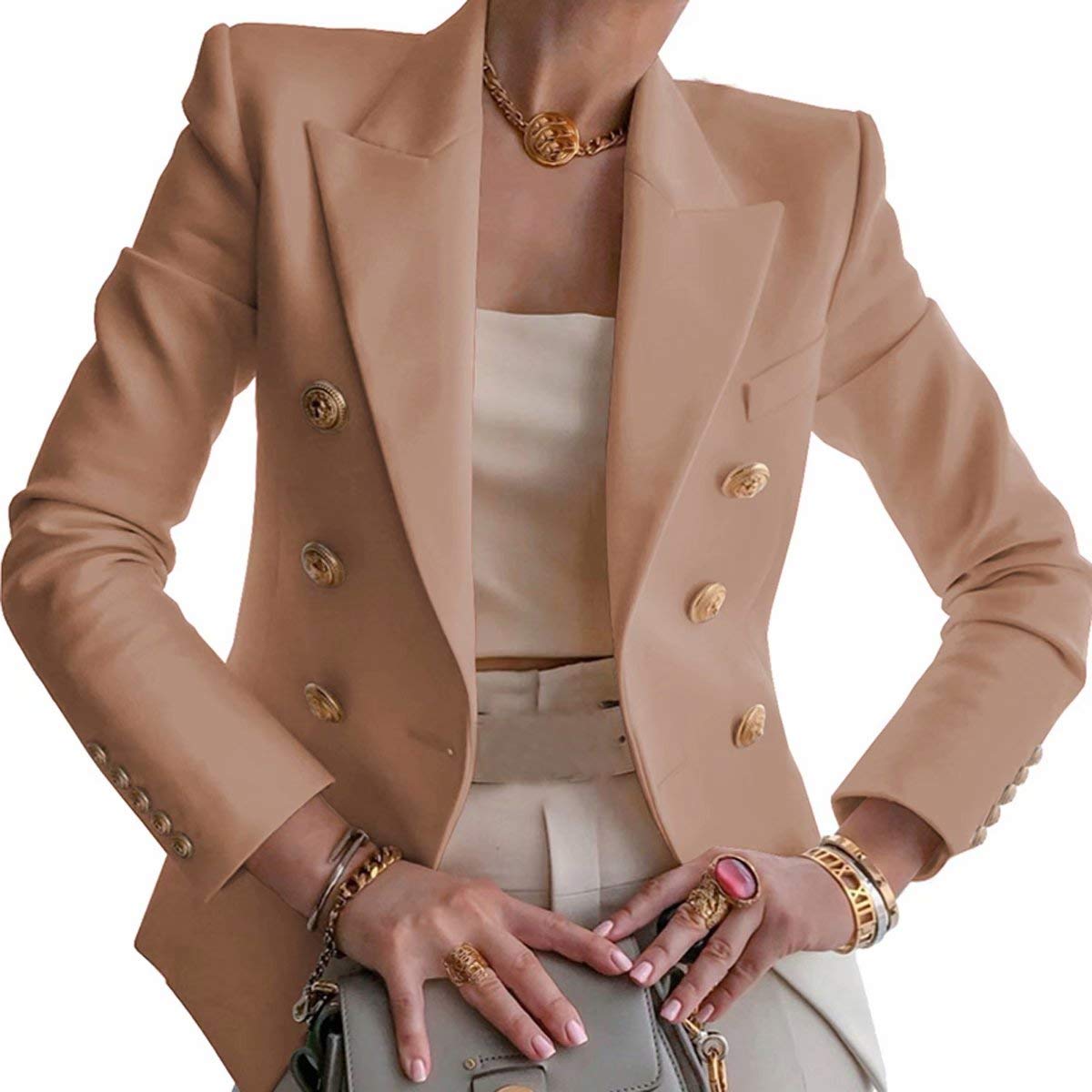 Blazer a doppiopetto, da Donna, sottile, per lavoro e ufficio, Colore: Tinta Unita