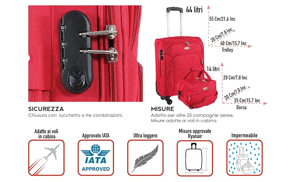 Trolley e Bagaglio Da Cabina Ultraleggero per Viaggi In Aereo. Approvato IATA per compagnie aeree Ryanair, Alitalia, EasyJet, ecc..