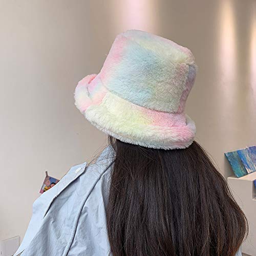Cappello da donna in finta pelliccia arcobaleno da pescatore