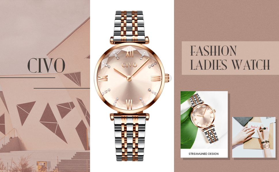 CIVO Orologio Donna Oro Rosa Orologi da Polso per Donna Impermeabile in Acciaio Minimalista Inossidabile Orologio pour Donna Analogico Affari Sportivo Vestito Regali Mamma