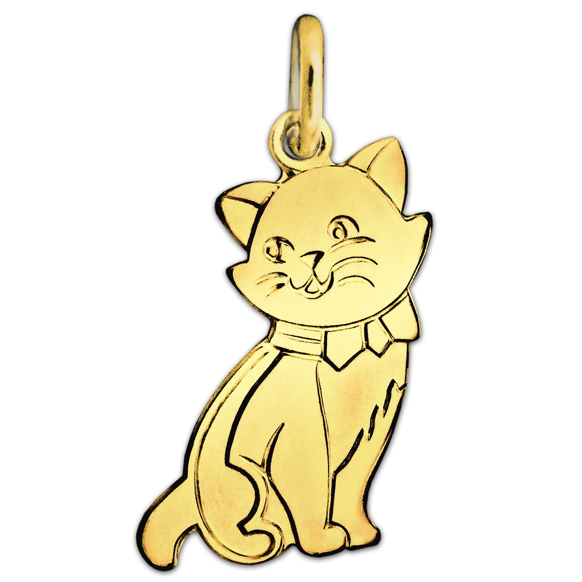 CLEVER SCHMUCK – Ciondolo da donna a forma di gatto, piatto, 16 x 10 mm, opaco e lucido, in oro 333 da 8 carati