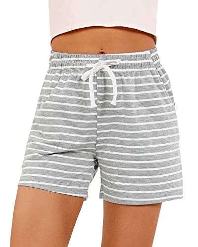 CMTOP Pantaloncini Donna Estivi Corti Pantaloni Pigiama da Notte Cotone con Tasche Righe Casual Elasticizzati Vita Alta Morbido & Traspirante per Dormire per Casa Sportivi