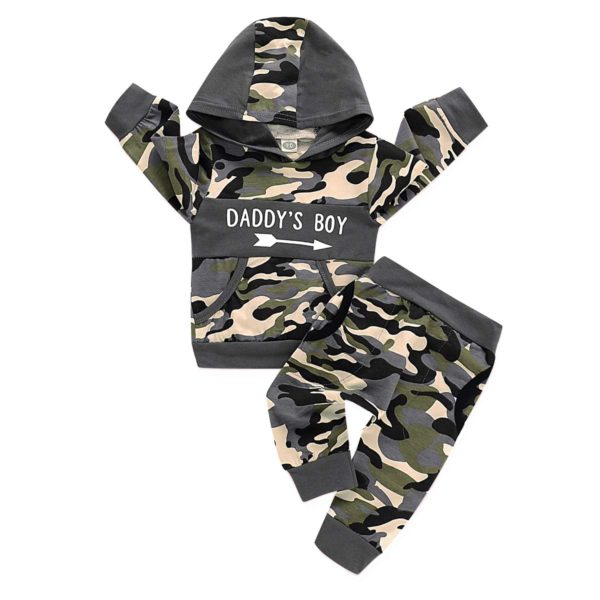 Felpa con cappuccio con scritta “Daddys Boy”, con stampa mimetica che rende il vostro bambino più fresco ed elegante.