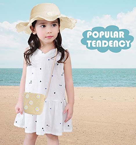 Design carino: i cappelli di paglia si abbinano alla tasca in paglia per offrire comodità, i bambini possono portare le loro cose preferite in questa tasca. Design accattivante con fiori colorati, decorare perfettamente i vostri bambini, rendendo i vostri bambini più carini, facili da abbinare a qualsiasi abbigliamento estivo.