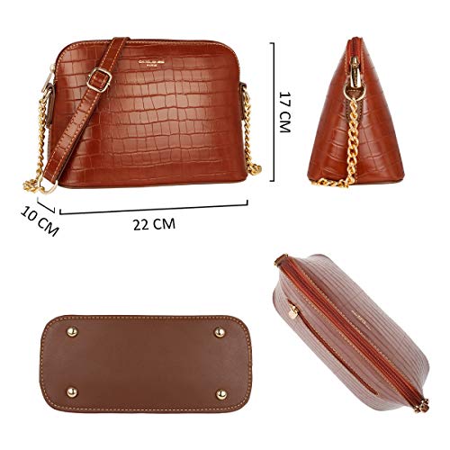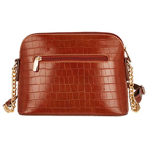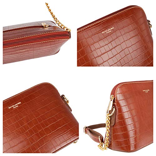 David Jones – Piccola Borsa a Tracolla Spalla Donna Catena – Borsa Mano Pelle Coccodrillo Messenger Crossbody Bag – Clutch Borsetta Sera Pochette – Shopping Sacchetto Borsello – Cammello Marrone
