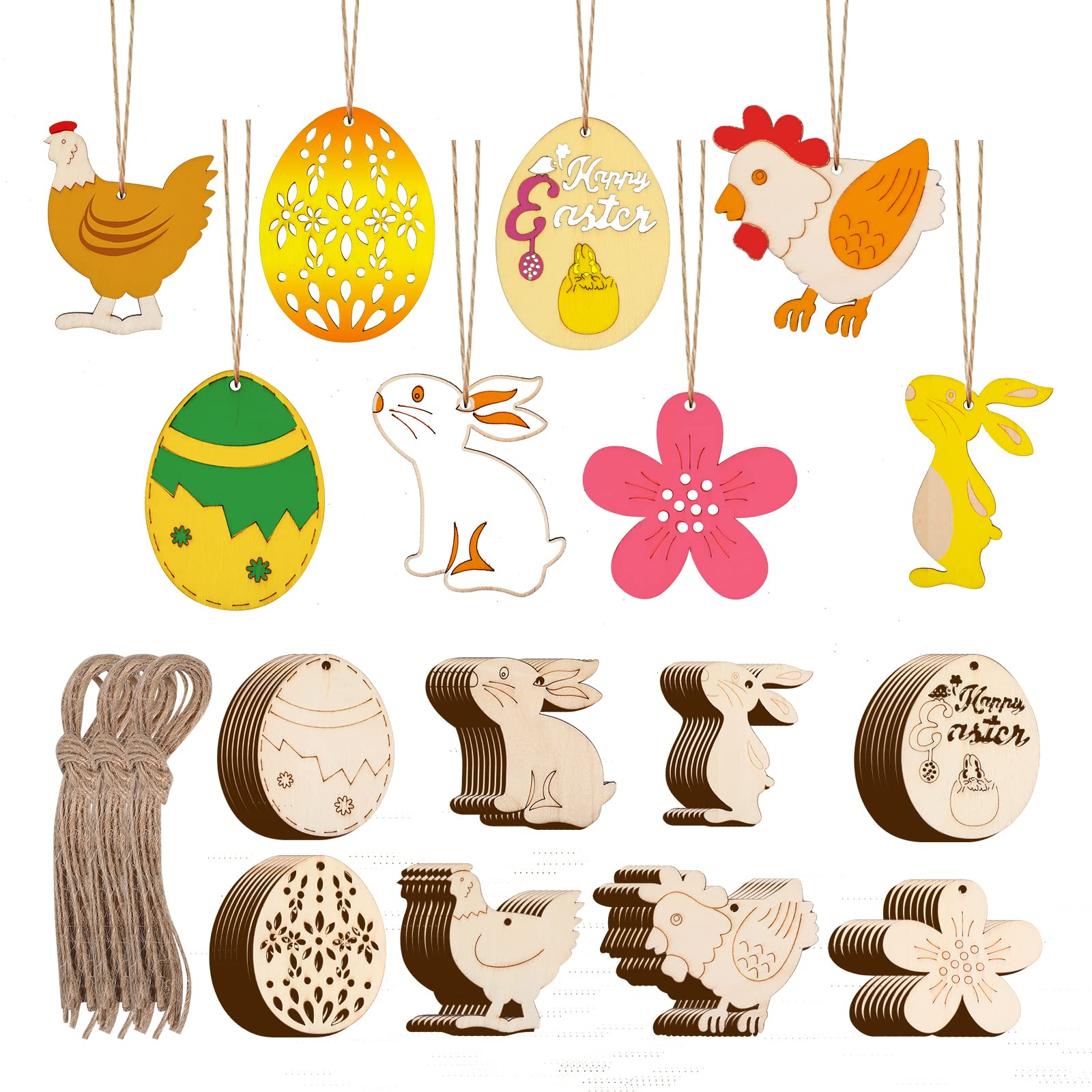 Dekewe Ornamenti In Legno Di Pasqua Artigianato, 40 Pezzi Kit Di Ritaglio Di Legno Non Finito Day Per Bambini, Decorazione Appesa Di Pasqua Con Corda Appesa, Tag Di Pasqua Uova Bunny Chick, Home Decor