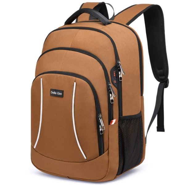 Della Gao Zaino da uomo per computer portatile da 15,6 pollici, impermeabile, per lavoro, scuola, scuola, lavoro, viaggi, nero