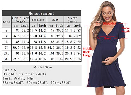 Doaraha Vestiti Premaman Eleganti Camicia da Notte Parto Ospedale Cotone Camicia da Notte Premaman Abito Manica Corta Premaman maternità