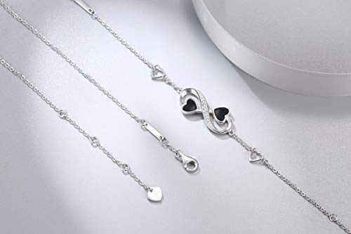 ❤ ALTA-QUALITÀ ❤ – Bracciali da donna realizzati in argento sterling 925 . Assicurato da una chiusura a moschettone in argento sterling, il bracciale regolabile è abbellito da un bellissimo simbolo dell’infinito e da due cuori. Il simbolo dell’infinito è impreziosito da scintillanti zirconi bianchi che lo rendono davvero accattivante. Per questi gioielli è stata utilizzata la squisita tecnica di lucidatura. Il bracciale è regolabile a 15,7cm, 17,7cm, 19,5 cm o 20,8 cm .