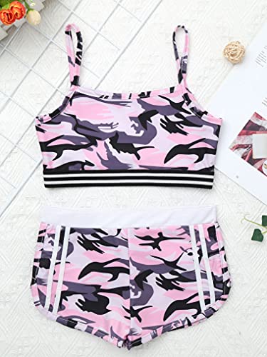 Freebily Completo Sportivo da Bambina Cotone Crop Top Canotta Reggiseno Sportivo Bralette Pantaloncini Sportivi Tuta da Ginnastica Artistica Danza Moderna Jazz Hip Hop
