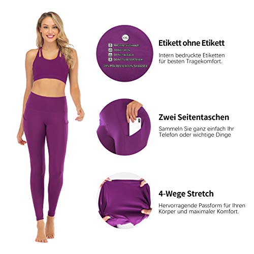 FREEZHOUSHANA Pantaloni Yoga Donna Vita Alta con 2 tasche per Allenamento, Donna Fitness Sportivi Leggings per Corsa Palestra Sport Pilates
