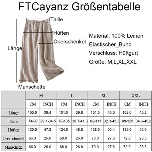 FTCayanz Donna Pantaloni Larghi Lino Vita Alta Pantaloni Gamba Larga Estivi con Coulisse