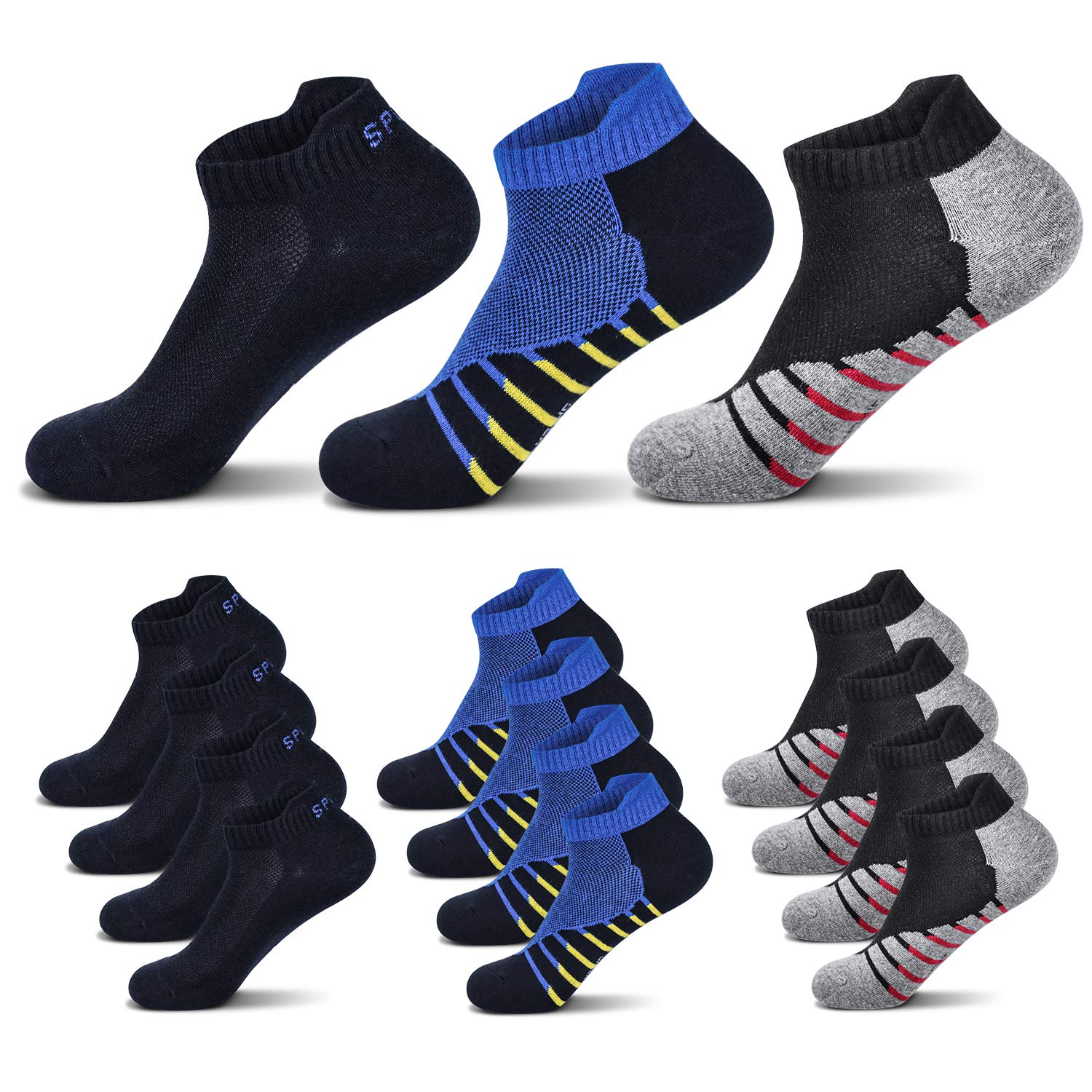 Fullluwaa Calzini Sportivi da Uomo, in Cotone, Confezione da 12, Confezione da 6