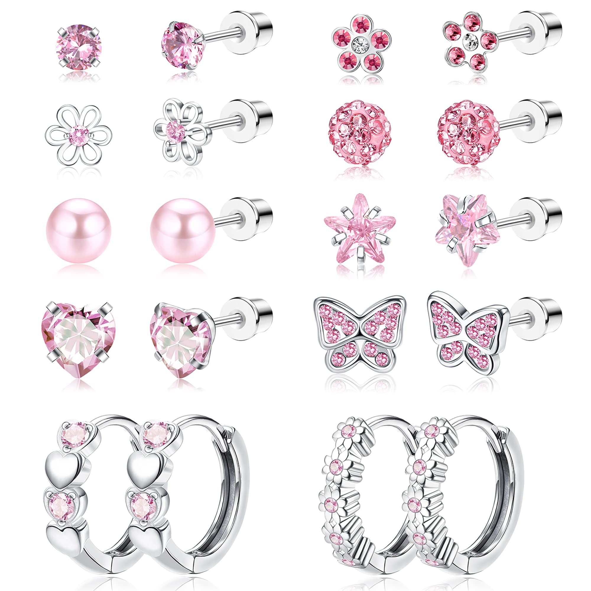 JeweBella 10Paia Piccoli Orecchini per Donna Ragazze Acciaio Chirurgico Orecchini Ipoallergenico Orecchini a Cerchio Farfalla Carina Zircone Fiore Multicolore Vite Posteriore Orecchini Set