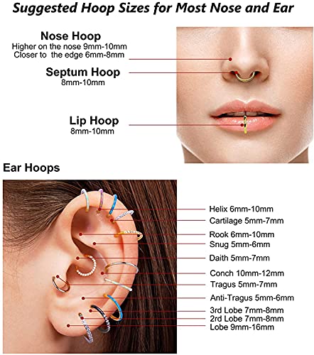 ❤ MISURA DELL’ORECCHINO ❤16G (1,2 mm), diametro interno: 6/8/10 mm,colore: argento/oro/oro rosa ,Questa è una dimensione più adatta per piercing septum,piercing naso septum,la maggior parte dei piercing, come orecchini, anelli al naso, anelli per le labbra, orecchini per cartilagine, anelli per sopracciglia, anelli per capezzoli, ecc.