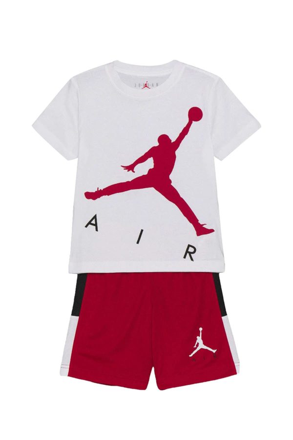 JORDAN – Relizzato in cotone – T-shirt a maniche corte – Stampa frontale – Colletto a girocollo – Shorts con logo – Vita a coulisse – Colore: Bianco/Rosso