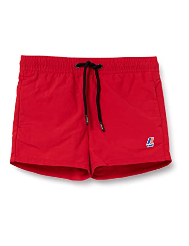 Costume da bagno uomo impacchettabile nella tasca posteriore. Costume a pantaloncino lunghezza mezza coscia, realizzato in tessuto nylon Ripstop antistrappo. Regolazione in vita con elastico e coulisse, accessori personalizzati K-Way colore nero.