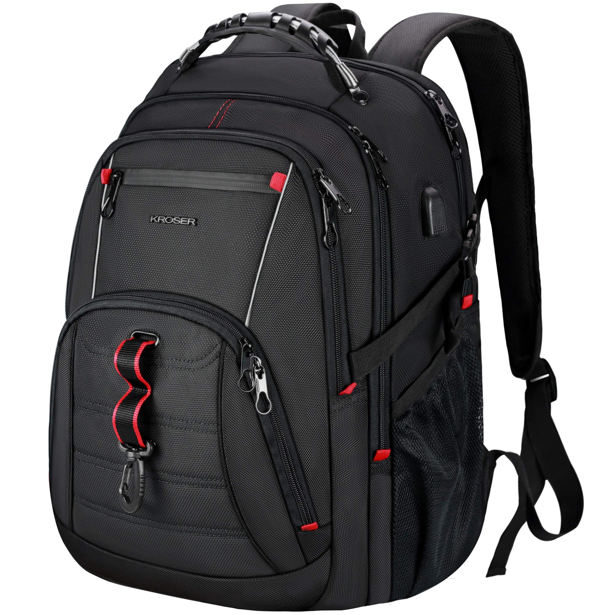 KROSER Zaino per Laptop da Viaggio 17,3 Pollici Zaino per Computer di Grandi Dimensioni Zaino Elegante da College con Porta di Ricarica USB & Tasche RFID Daypack Idrorepellente per Scuola/Affari/Uomin