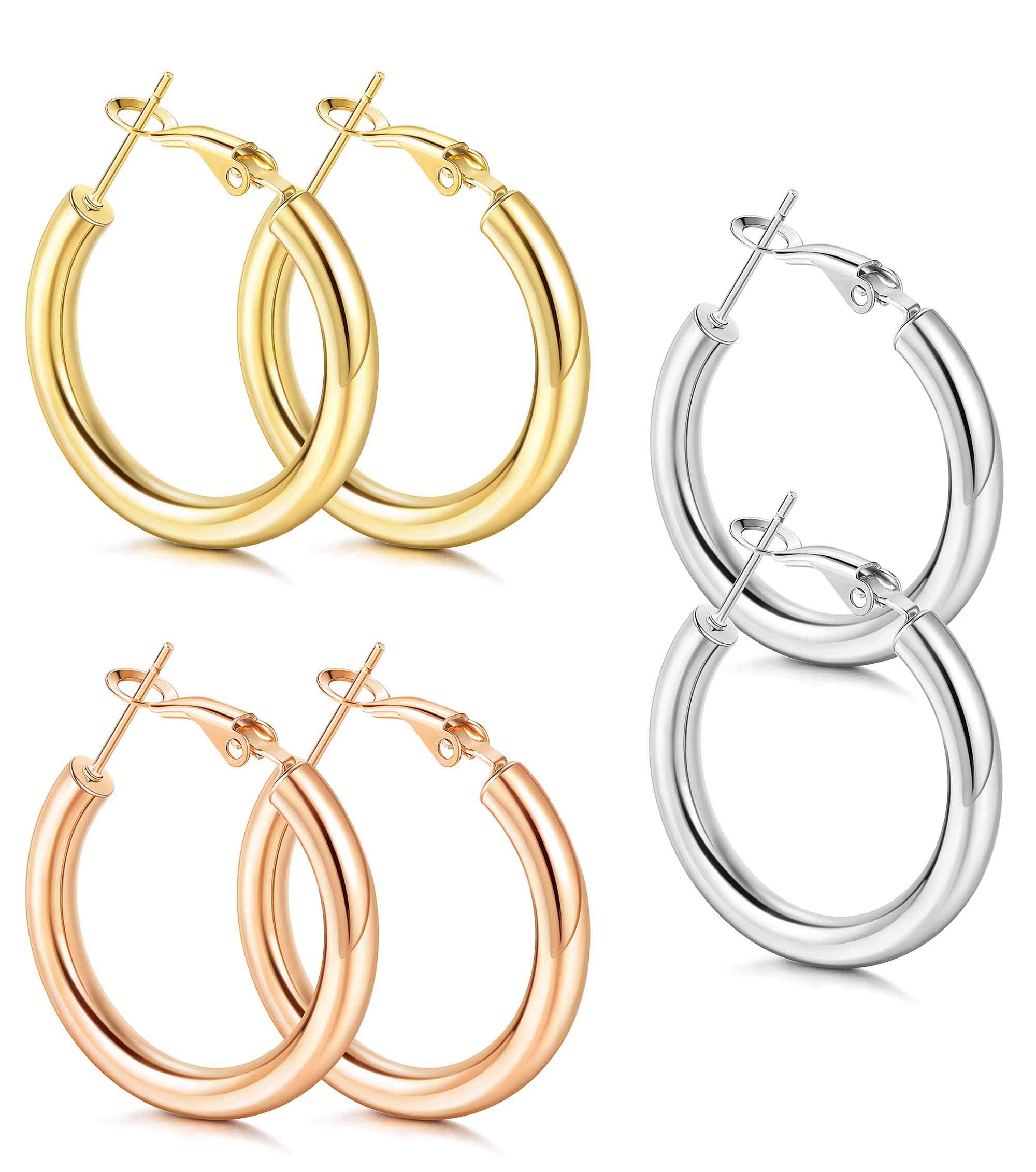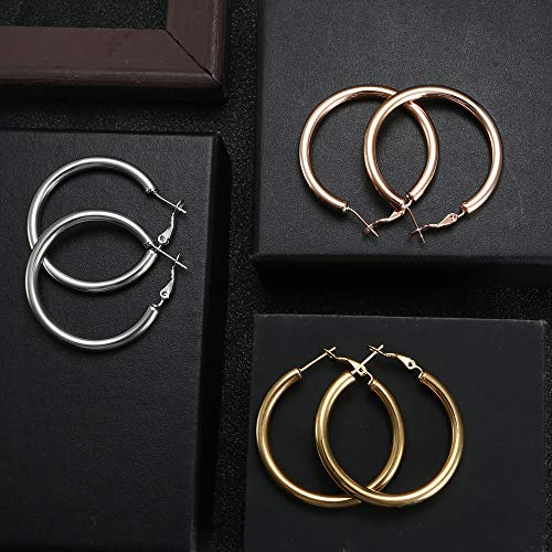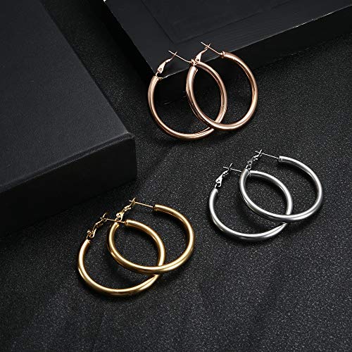 Milacolato Set di 3 Paia di Orecchini a Cerchio Spessi per Donna Orecchini a Cerchio vuoti Leggeri Placcati oro Rosa oro 18 Carati Minimalista Orecchini a Cerchio Aperto Gioielli Regalo 20-50 mm