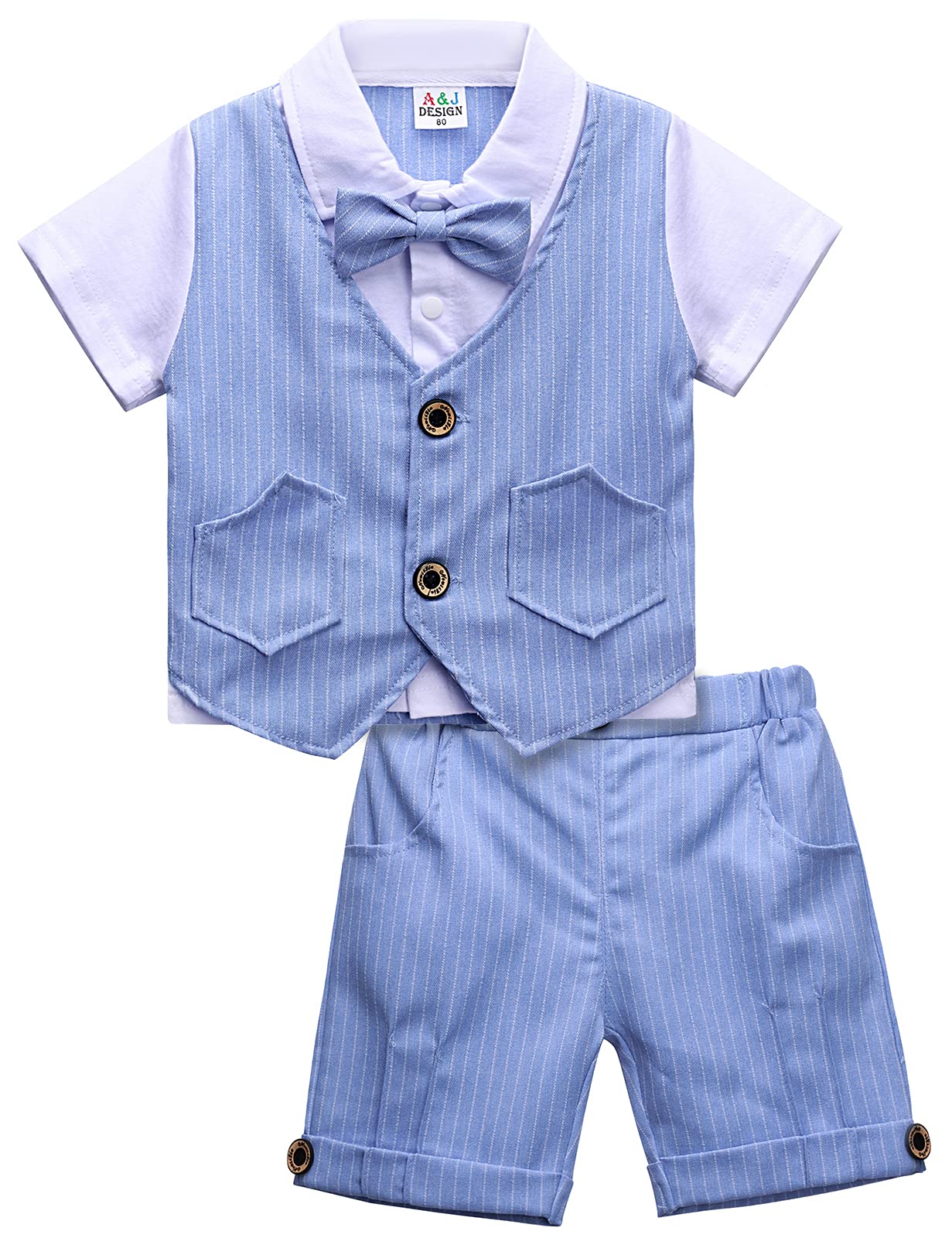 mintgreen 2Pcs Bambino Ragazzo Camicia Bowknot Cravatta T-Shirt con Cime Pantaloncini Abiti Set