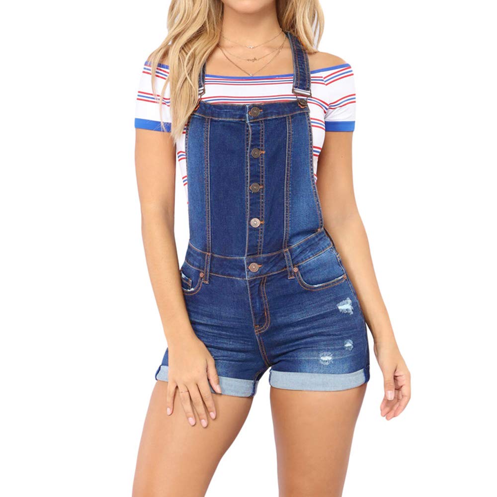 Moda Donna Jeans Corta, Morbuy Nuovo Salopette Senza Maniche Bretelle Jumpsuit Tasche Elasticità Denim Pantaloncini Pantalone Overall Monopezzi Partito Playsuit