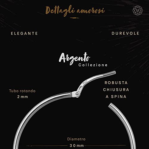 ELEGANTE. I tuoi nuovi discreti ed eleganti orecchini a cerchio rotondo in vero argento 925 (argento rodiato) con finitura liscia e lucida. Semplice, piccolo e resistente ai graffi. Chiusura robusta DUREVOLE. Argento sterling 925 certificato con certificato di gioielli d’argento. Con panno per la pulizia dell’argento ATTENTO ALL’AMBIENTE. Autentici gioielli progettati e realizzati in Europa. Cassa ecologica riciclabile. Adatto alla pelle, insensibile e garantito senza nichel. Non allergenico. Grande idea regalo VERI GIOIELLI, VERA GIOIA. Nobile paio di orecchini pendenti (diametro: 3,5 centimetri, raggio: 1,75 centimetri, tubo rotondo: 2,0 millimetri) per la vita quotidiana, lavoro, uscire, ufficio, festival, festa IDEA REGALO SPECIALE (1) Incl. custodia regalo nobile (2) Certificato di autenticità (3) Panno per pulire l’argento (4) Libretto. Set regalo per migliore amica, moglie, madre, nonna, sorella, mamma, collega, zia, suocera, regalo di compleanno