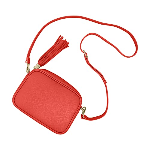 Parubi, Borsa Donna a Tracolla, In Vera Pelle Grana Dollaro, Made in Italy, Modello Anastasia, Borsetta Piccola con Frange Pochette a Tracolla Clutch Da Donna Ragazza Elegante, Corallo