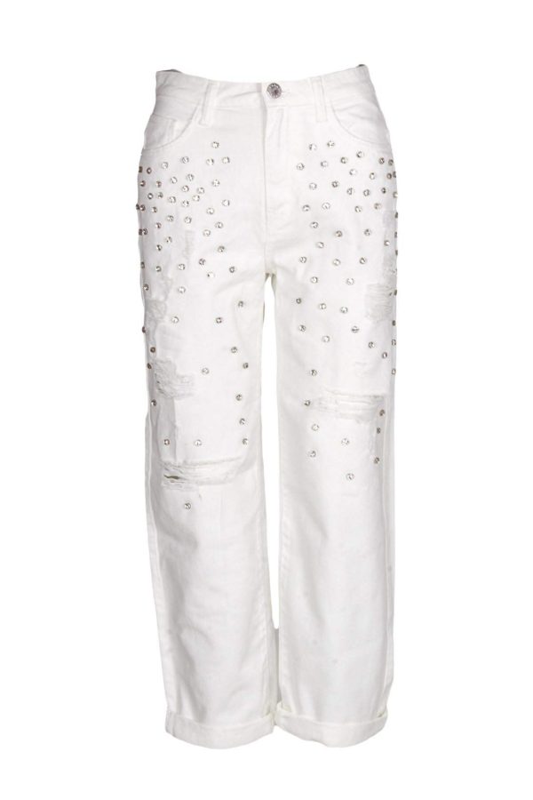 Pinko Jeans Maddie 7 Bianco Mom Fit con Applicazione di Strass