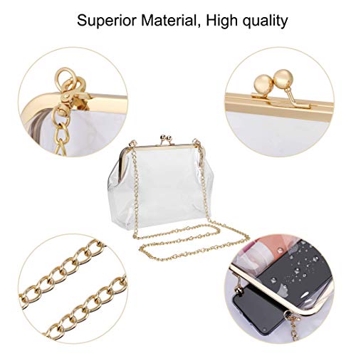 Fai una dichiarazione di moda con questa borsa a tracolla di qualità superiore. Caratteristiche: 1. Realizzato con metallo integrato e acrilico extra resistente, robusto e resistente. Una chiusura con chiusura a bacio è buona per proteggere gli effetti personali. 2. Hardware di alta qualità – Montatura in metallo dorato di alta qualità, gancio di chiusura Sfoggia il cinturino a catena in oro indossando la tracolla. 3. Tracolle a catena rimovibili – La cinghia può essere facilmente rimossa. Può essere una borsetta, una borsa da sera, una tracolla o una borsa a tracolla. 4. Design semplice: puoi decorare il fai-da-te su questa pochette e facile da pulire. Scegli Colore “Cancella” per lavoro, partite di calcio, concerti, controlli di sicurezza o uscite! 5. Perfetto per – Perfetto per ogni occasione come spiaggia, festa, shopping, escursioni, campeggio, appuntamenti o semplicemente come una borsa di tutti i giorni, un accessorio indispensabile per ragazze e donne. Specifica: Materiale: plastica PVC trasparente morbida Chiusura: chiusura kiss-lock Dimensioni: 21 x 8 x 18 cm / 8,3 x 3,1 x 7,1 pollici Pacchetto: 1 x Borse a tracolla portamonete con catena in metallo
