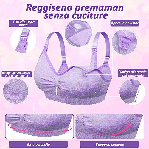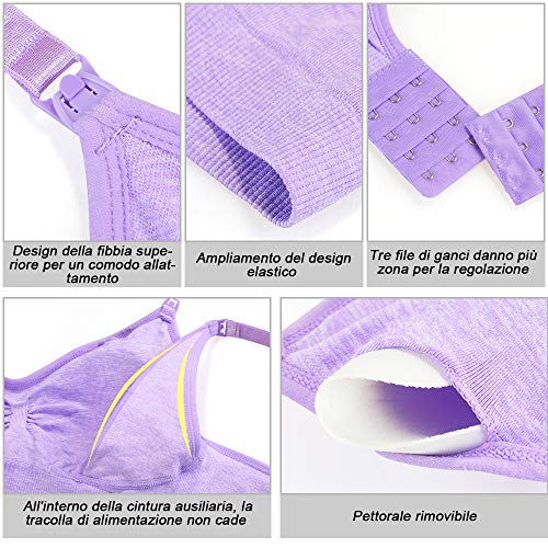 Rovtop 3Pack Reggiseno Allattamento,Allattamento Senza Ferretto,con Pettorina Rimovibile,Fibbia di Prolunga, Supporto per Allattamento (Viola, Beige, Grigio Scuro)