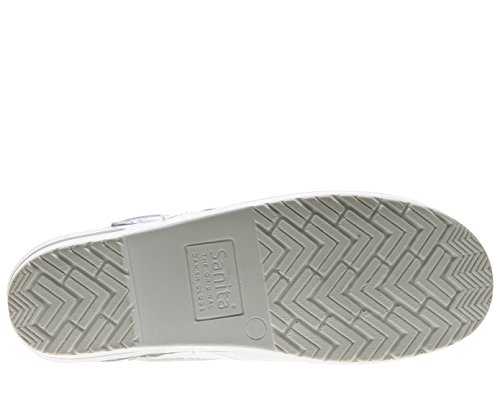 Sanita Donna Professionale PU Clog – Approvato dall’apma per i suoi standard nel supporto dell’arco e nella costruzione ortopedica – Materiale Composizione: Pelle – Dondolo Movimento Suola Permette Naturale Movimento da Tacco a Punta – Poliuretano (PU) Suola Rinforzato con un Plastica Rigida Cornice – Forma Anatomica Suola per Arco Supporto con un Ampio Punta Scatola