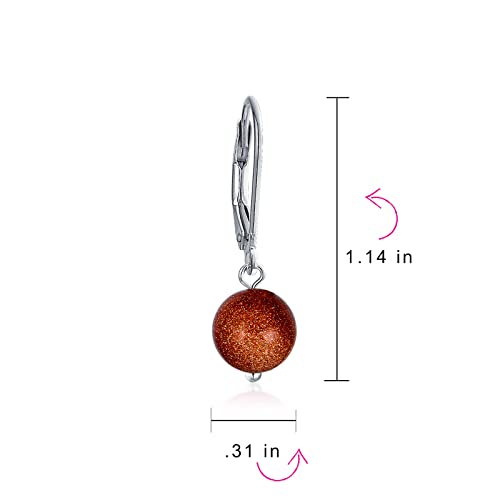 Semplice basic Gemstone Round 8MM Bead Ball Drop Dangle Orecchini per donne Teen Secure Hinge Leverback .925 Sterling Silver Birthstones Più colori
