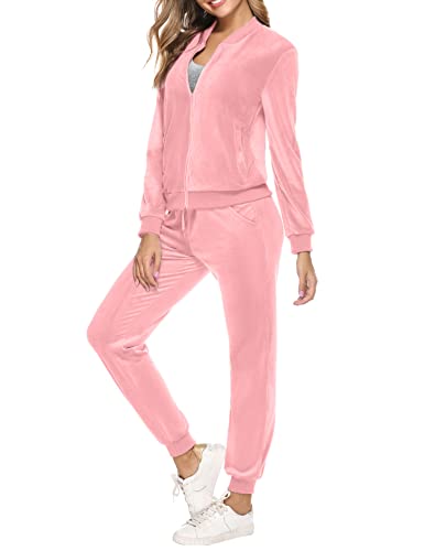Sevidith Tuta Sportiva Donna Velluto Due Pezzi Tuta da Ginnastica Casual Completo Morbida Casa Pigiama Set con Giacca a Zip e Pantaloni Jogging per Primavera Autunno Inverno