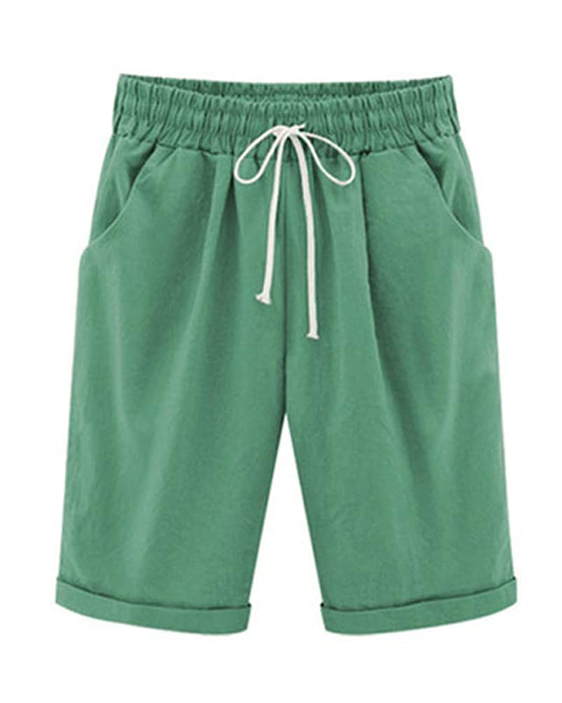 ShallGood Pantaloncini Estate Elastico in Vita da Donna Bermuda Spiaggia Shorts Pantaloni Corti Vita Alta Puro Colore Casual Elastica Hotpants Shorts