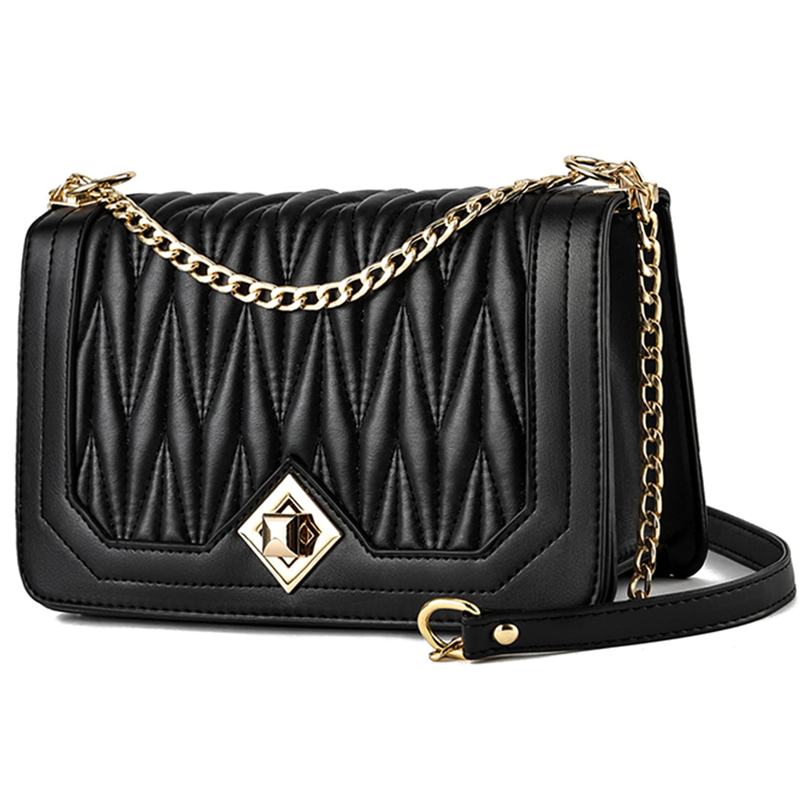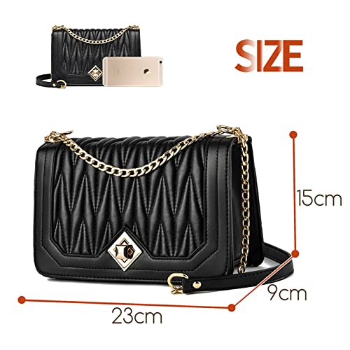 Travistar Borsa Tracolla Donna Piccola Borsa a Mano Donna Borse a Spalla Trapuntata Bauletto di Moda di Lusso Borse da Sera Borsa da Città in Pelle PU, con la Spallina a Catena Dorata, Nero