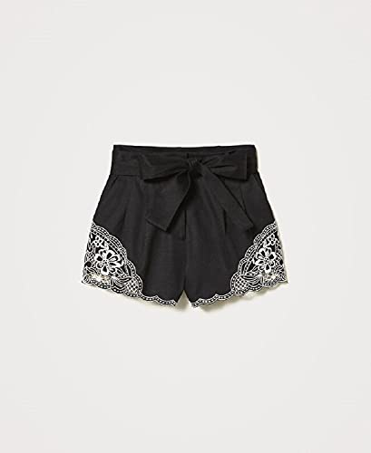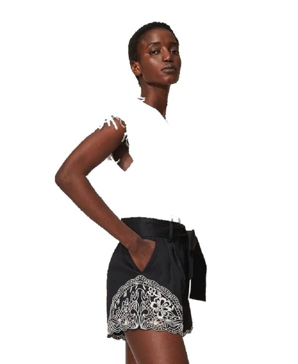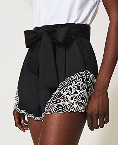Ricamo Bianco “Neve” / Nero Questi shorts hanno una linea morbida. 100% cotone. Materiale 2: 100% poliestere. Materiale 3: 100% poliestere. Cintura: 100% cotone. Fodera: 100% poliestere. Lavare a mano, Non trattare con cloro, Non usare asciugatrice, Lavare a secco, Lavare a rovescio, Stirare a rovescio, Lavare in acqua fredda