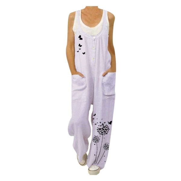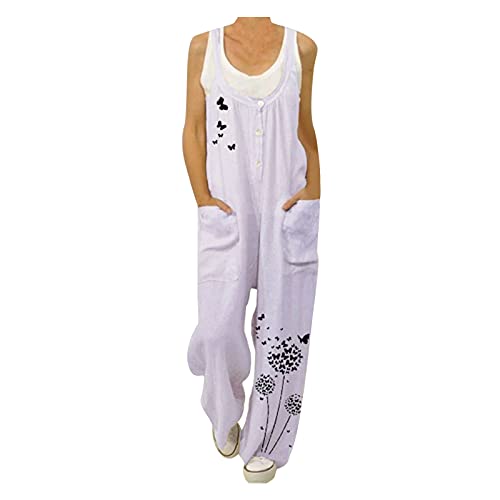 Ykghfd Casual Baggy Salopette Tute Retro Salopette Vintage Stampato Sciolto Senza Maniche Lunga Tuta Pantaloni Gamba Larga Pantaloni Pagliaccetto